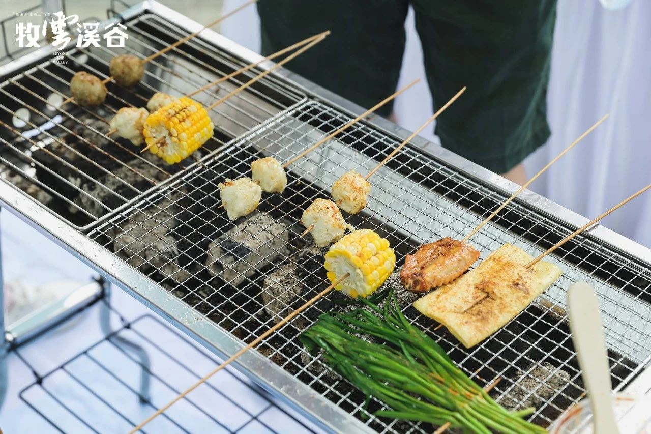 雞中翅、魷魚須、五花肉、牛肉串、掌中寶、小黃魚......在熱鬧的田園集市里,小朋友們挑選燒烤的食材,大人在一旁的燒烤架上大展身手,烤肉的香味撲入鼻腔,讓人垂涎欲滴。