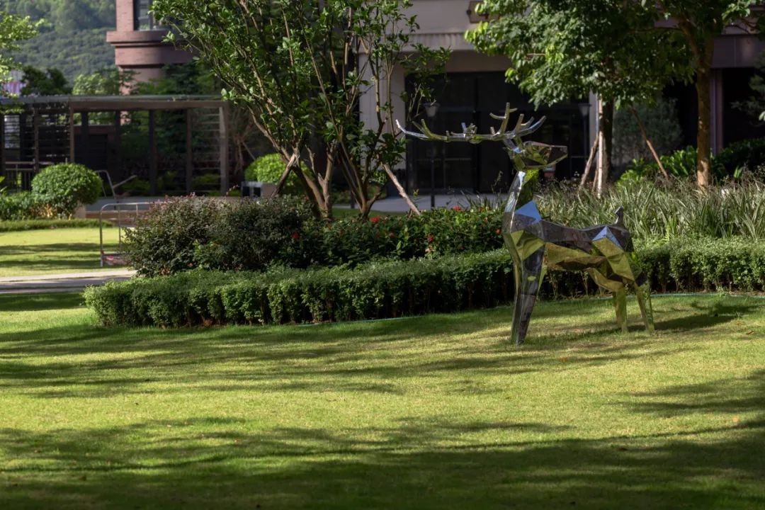 每處活動區(qū)都有惟妙惟肖的長角鹿造型建筑物,或凌空跳躍或駐足回眸。項(xiàng)目融合自然因素和人文因素,成功打造出讓居民在運(yùn)動健身以及放松身心的同時,享受干凈、開闊以及層次豐富的自然景觀氛圍。