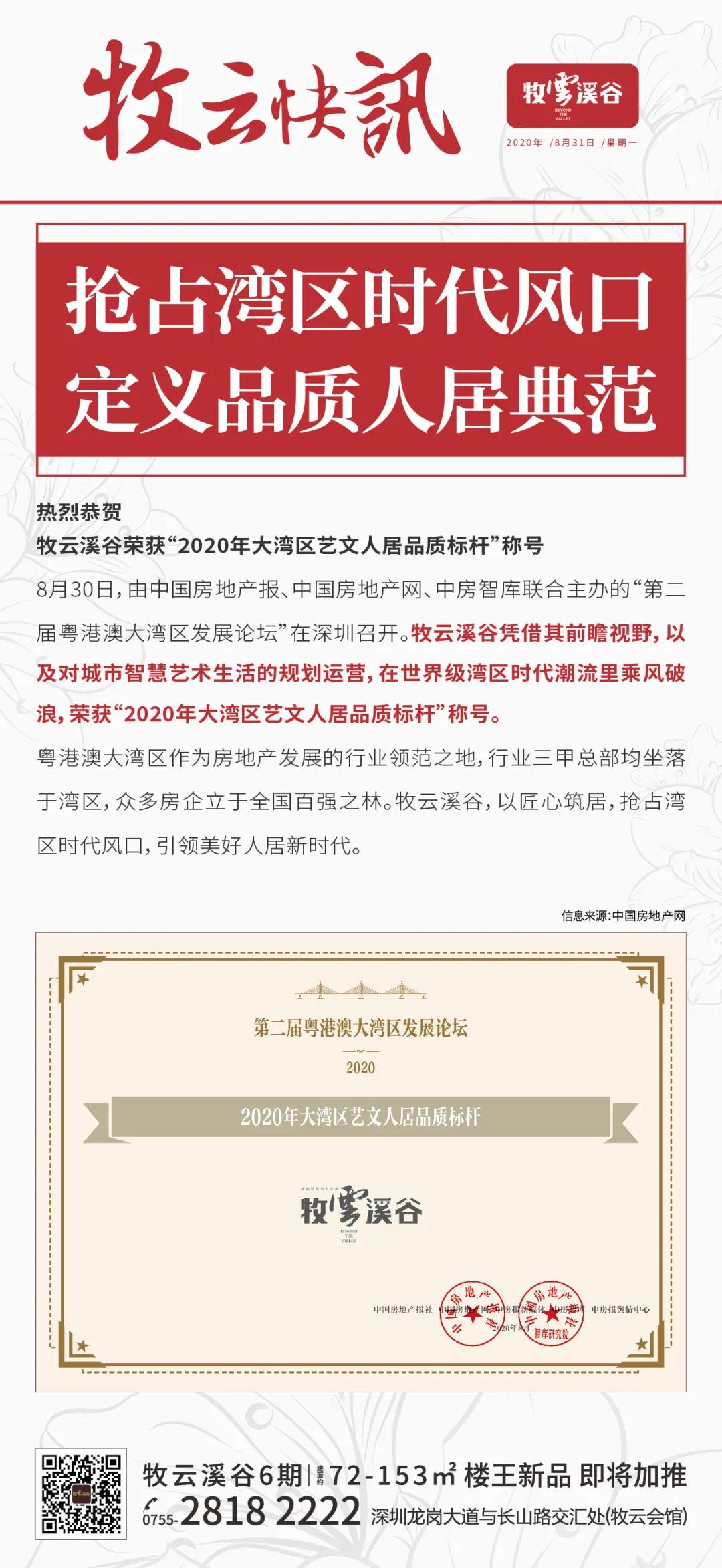 祝賀牧云溪谷榮獲“2020年大灣區(qū)藝文人居品質(zhì)標(biāo)桿”稱(chēng)號(hào)