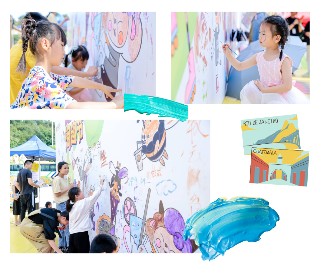 藝術(shù)涂鴉墻,每個人都是小小藝術(shù)家。小朋友們化身成神話世界里的“神筆馬良”,盡情發(fā)揮想象力,執(zhí)筆畫下自己心中的色彩。