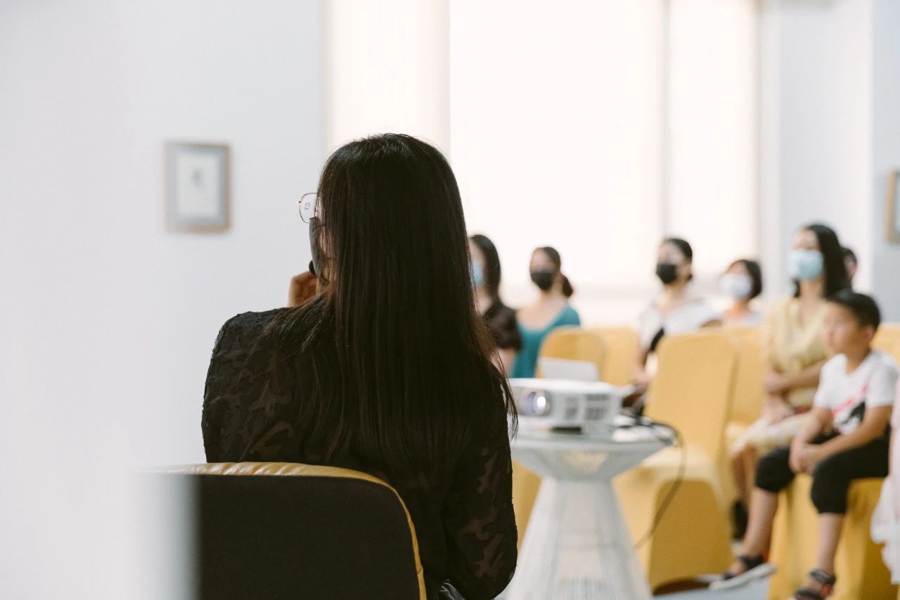 結束參觀展覽后,藝術家劉紫茵通過講座的形式向居民解釋和傳達了項目「一念之間」的理念,并分享了一些當代藝術的概念、議題和理論。首先,藝術家介紹了項目「一念之間」包含的一系列行為:從行走中發(fā)現開始,然后思考和命名藝術品并且給他們粘貼上展簽到最后拍攝記錄。