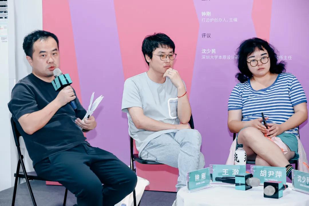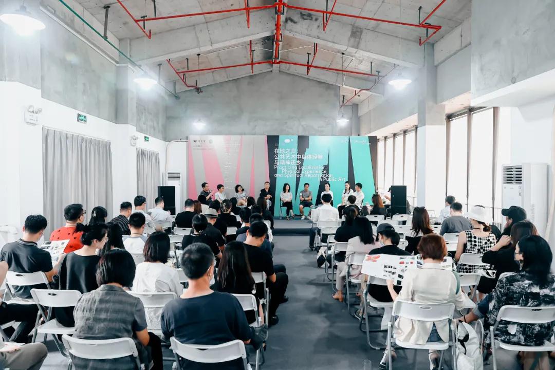 左起分別為:主持人鐘剛、獨(dú)立策展人王澈、藝術(shù)家胡尹萍、深圳大學(xué)本原設(shè)計(jì)研究中心公共藝術(shù)研究所主任沈少民、A4國(guó)際駐留藝術(shù)中心藝術(shù)總監(jiān)暨策展人蔡麗媛、鰲湖藝術(shù)村及鰲湖美術(shù)館發(fā)起人鄧春儒與王亭、坪山美術(shù)館副館長(zhǎng)盧楊麗、深圳地鐵美術(shù)館項(xiàng)目總策劃張曉飛