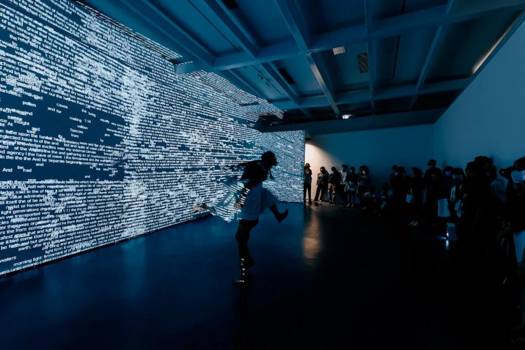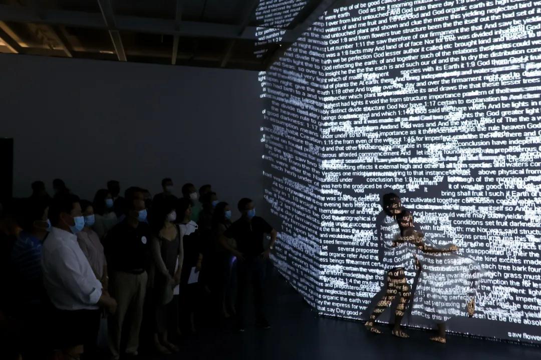 此次開(kāi)幕式還在展廳中央與社區(qū)空間中為現(xiàn)場(chǎng)嘉賓呈現(xiàn)了由北京現(xiàn)代舞團(tuán)帶來(lái)的沉浸式現(xiàn)代舞表演,舞者的表演與展廳中的新媒體藝術(shù)作品和裝置藝術(shù)作品融為一體,讓觀眾身臨其境,改變過(guò)往單一視覺(jué)化認(rèn)知,以身體、感知、意識(shí)等多維感官的角度來(lái)理解藝術(shù)。