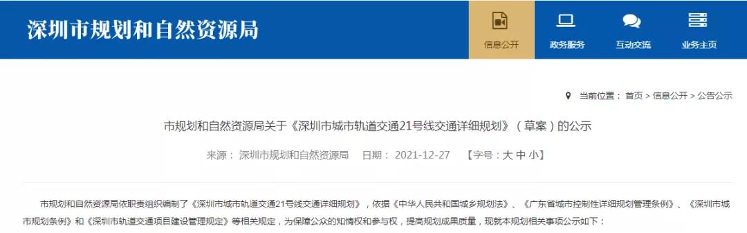 關(guān)于《深圳市城市軌道交通21號線交通詳細(xì)規(guī)劃》(草案)的公示